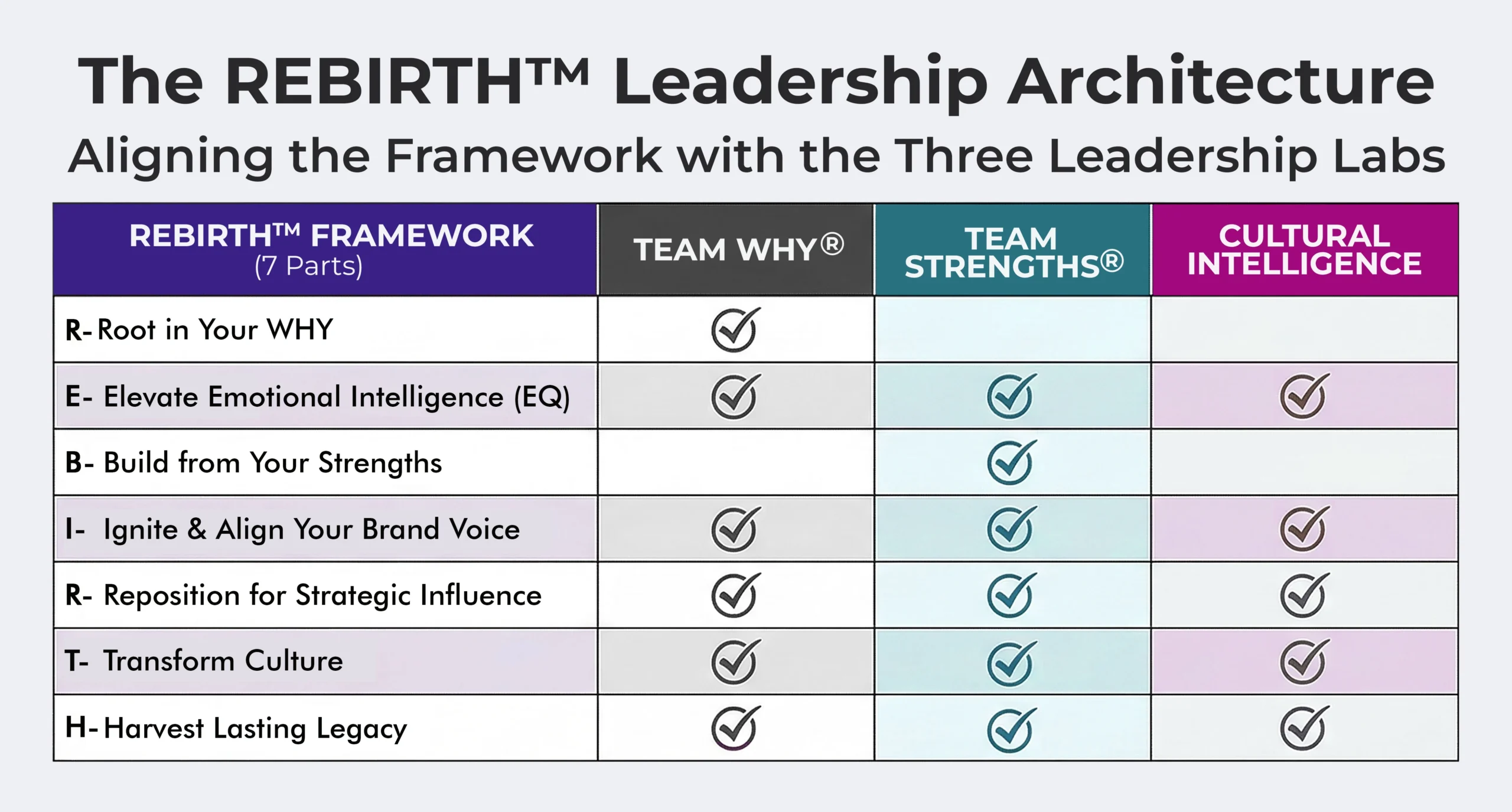 Purpose Alignment, Strengths-Based Performance, Cultural Intelligence & Global Agility